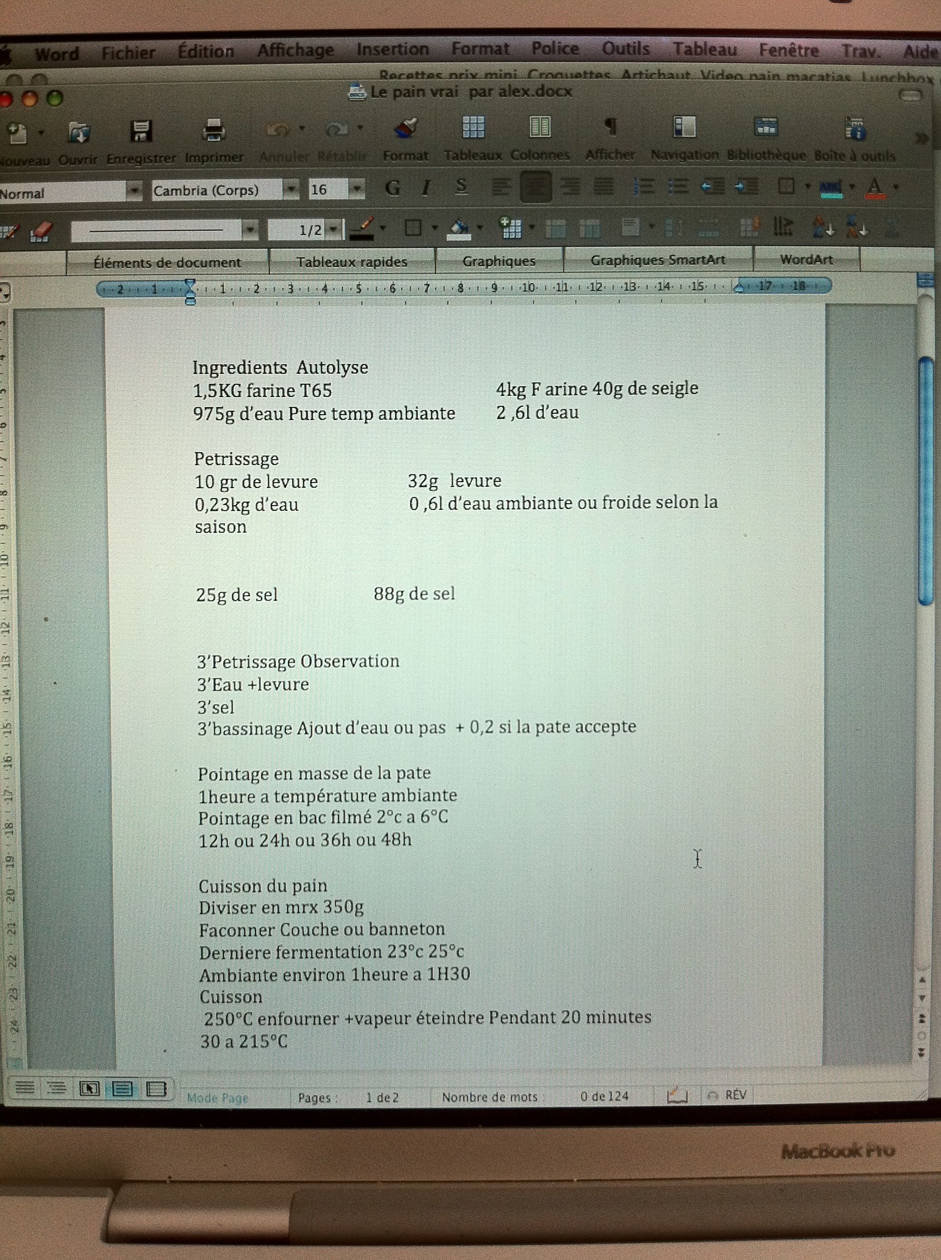 The chef at Flocons de Sel introduced me to the technique of the most basic method of bread making: the straight dough method. The easiest, fastest way to improve the flavor of any bread, or, the autolyse [awe-toh-lees] method. This is the term for “mix only your flour and water together, and let it sit for 40/60 minutes before adding salt and yeast, and kneading” and it’s really that simple. Let me explain what exactly “autolyse” means. Etymologically speaking, it’s the French word for the biological term “autolysis”, which is from the Greek words meaning “self” and “splitting”.