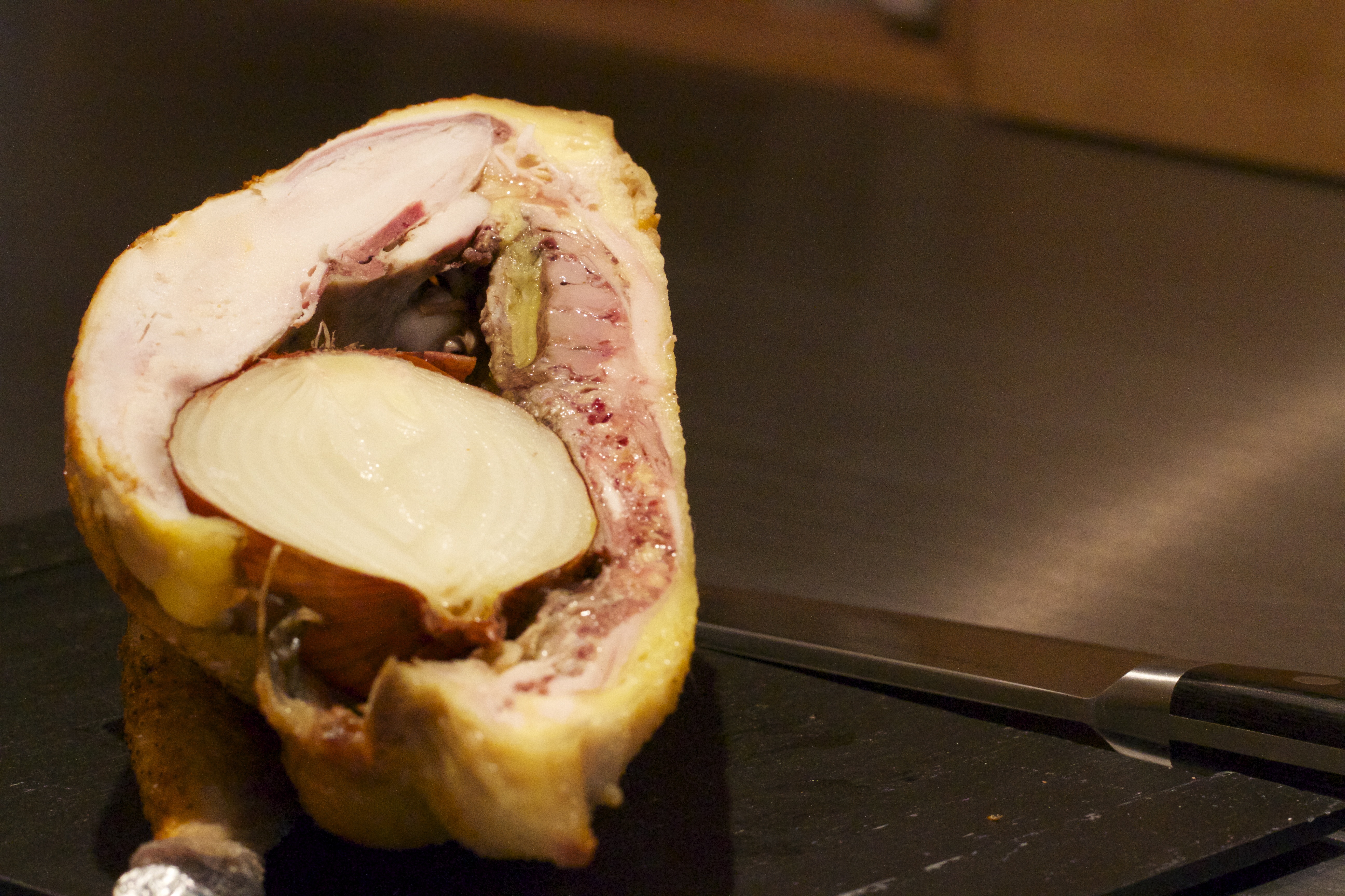 The bird I cooked two days ago, I kept until now and when I cut in half, it was near perfectly cooked – yet an added 0h30 would have made the breast 100%. I cooked at 78° centigrade without checking the core temperature.