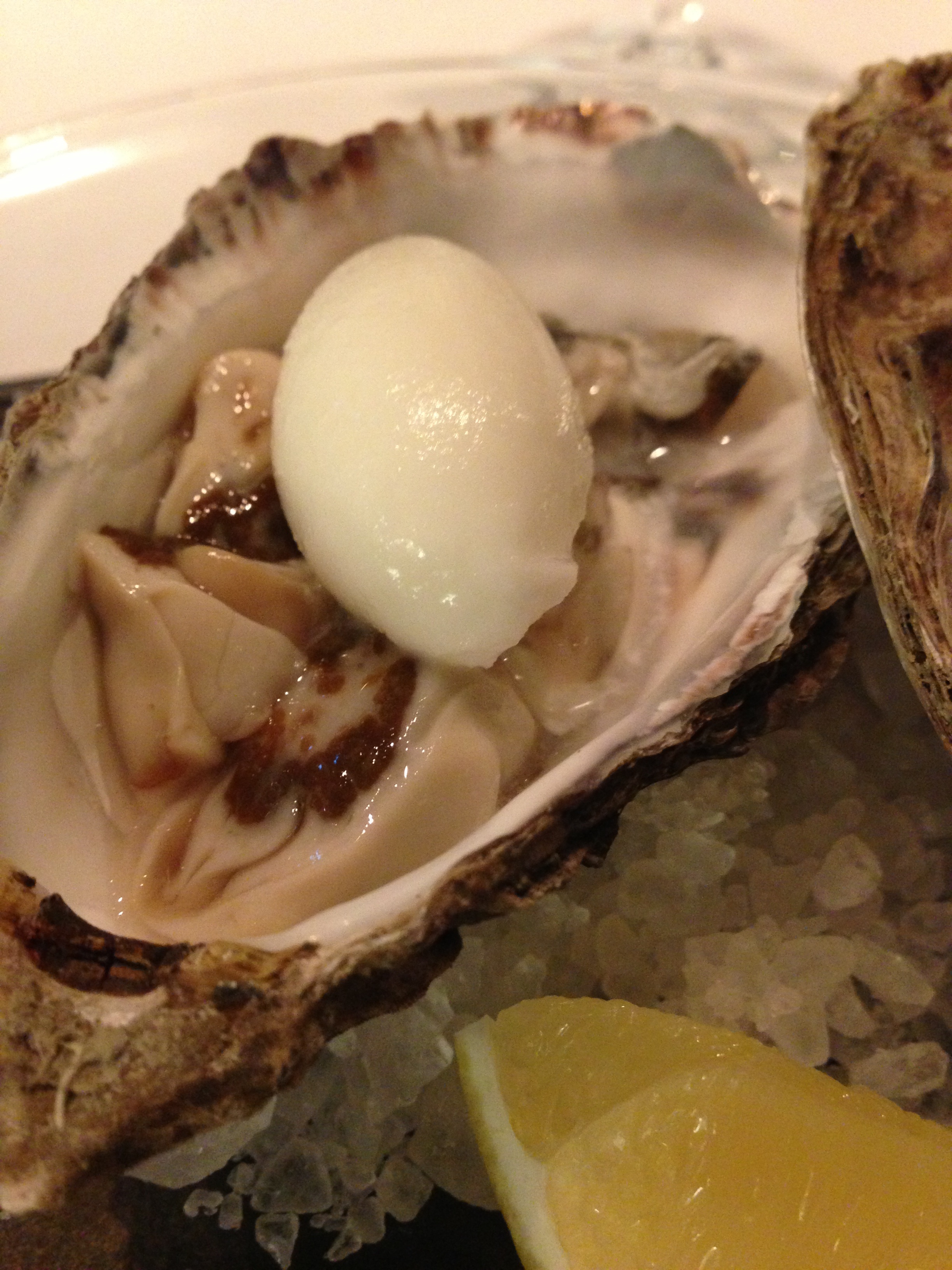 This guy can cook! Seriously we were surprised to enjoy kaki, one if our least favorite shell-fish. But this chef has the magic touch and it was delightful! The kaki was cut and atop was a lemon sorbet with a fresh lemon aside to gently squeeze for a citrus combination of sweet and sour. The combination was executed with a simple idea but very cleaver.
