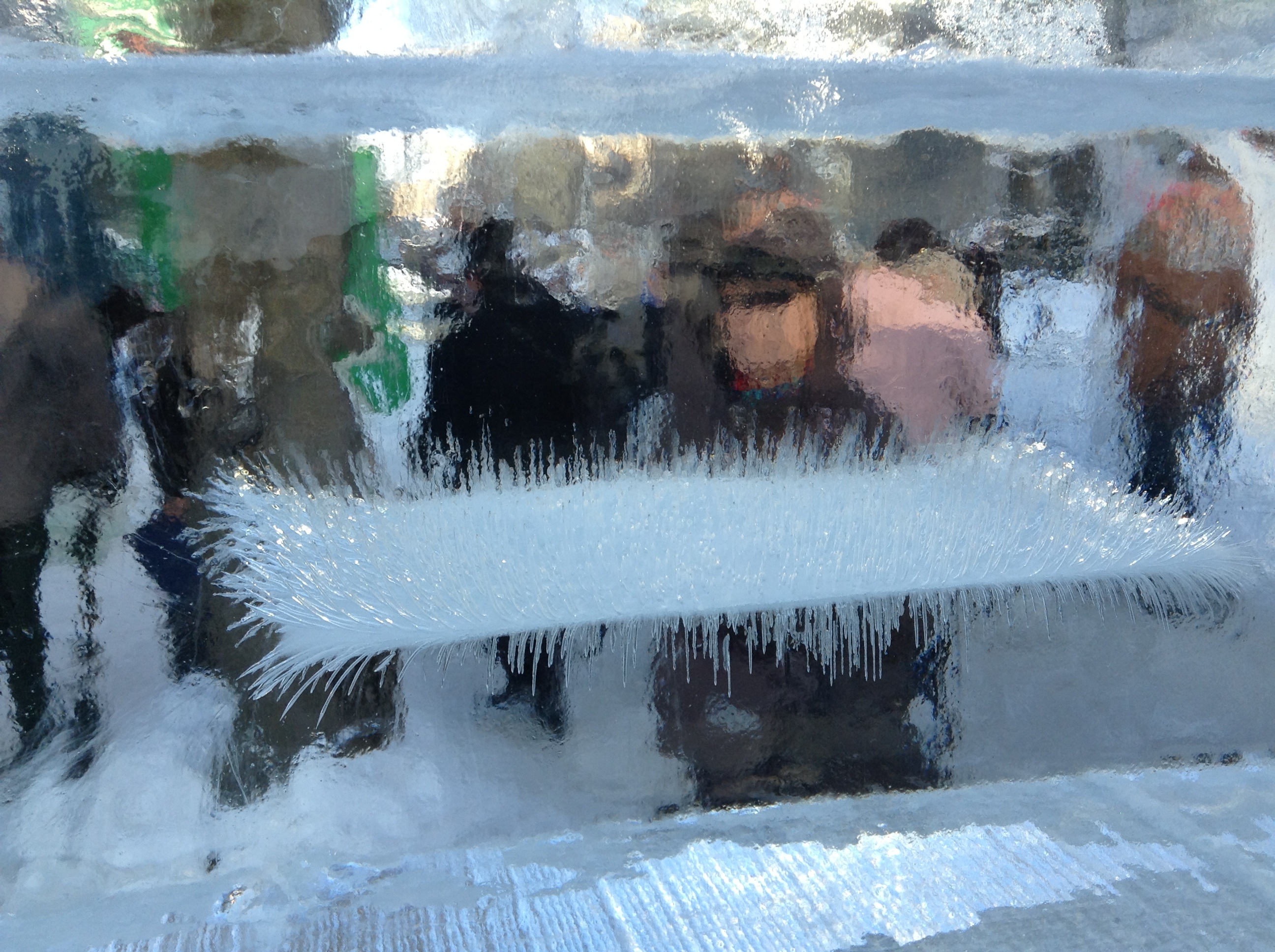 Walking in Sapporo I came across this icy wall are if ice blocks of frozen water crystals. It is a subject of interest, because ice connects us in so many ways.