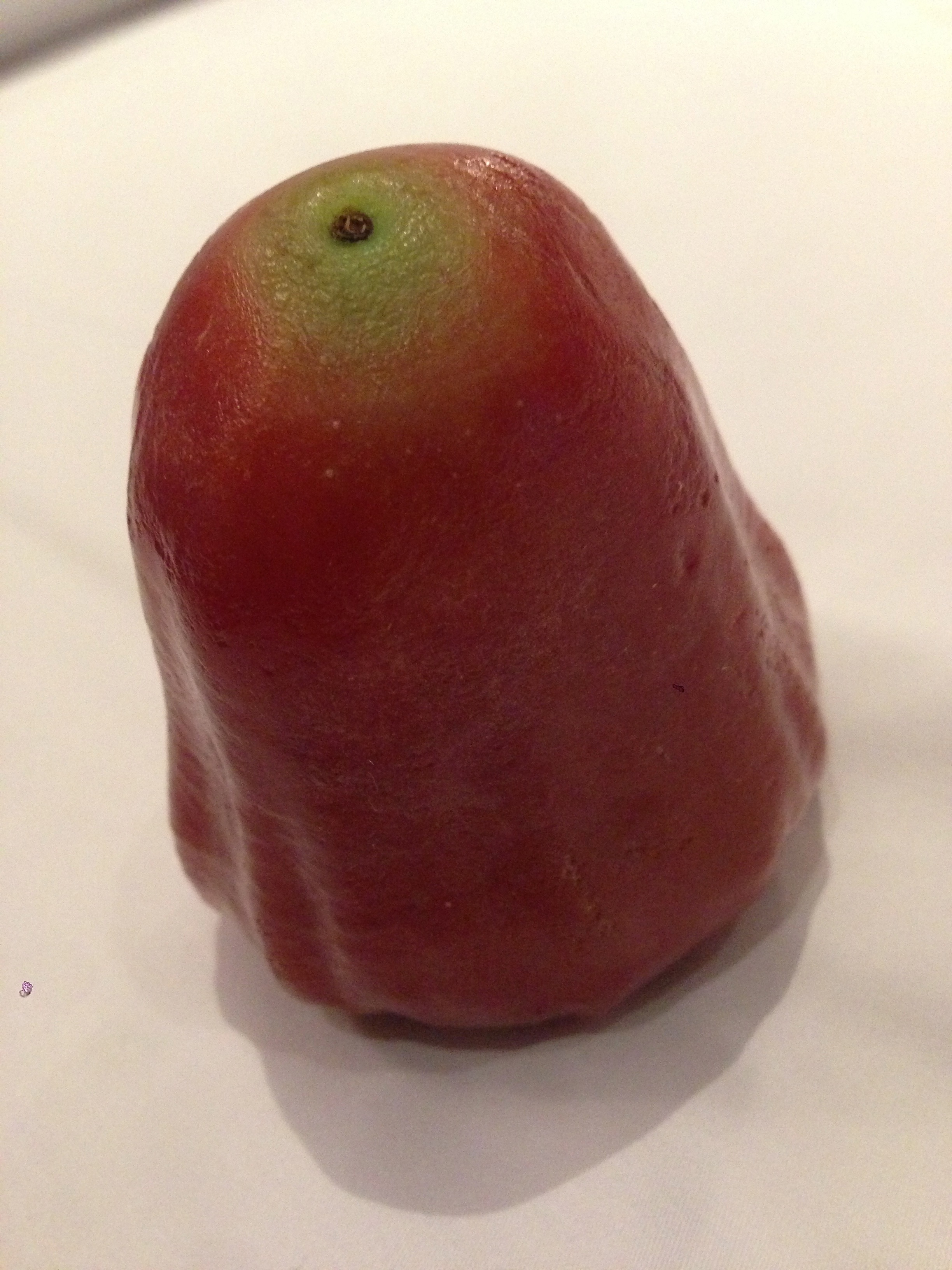 Rose Apple shaped like a bell, it can be eaten whole after the hollow end is cut off and a few tiny seeds inside removed. The fruit is crisp and succulent and only slightly sweet. Thais often eat it with a sugar-pepper condiments or nampla wan sauce to add to its taste.