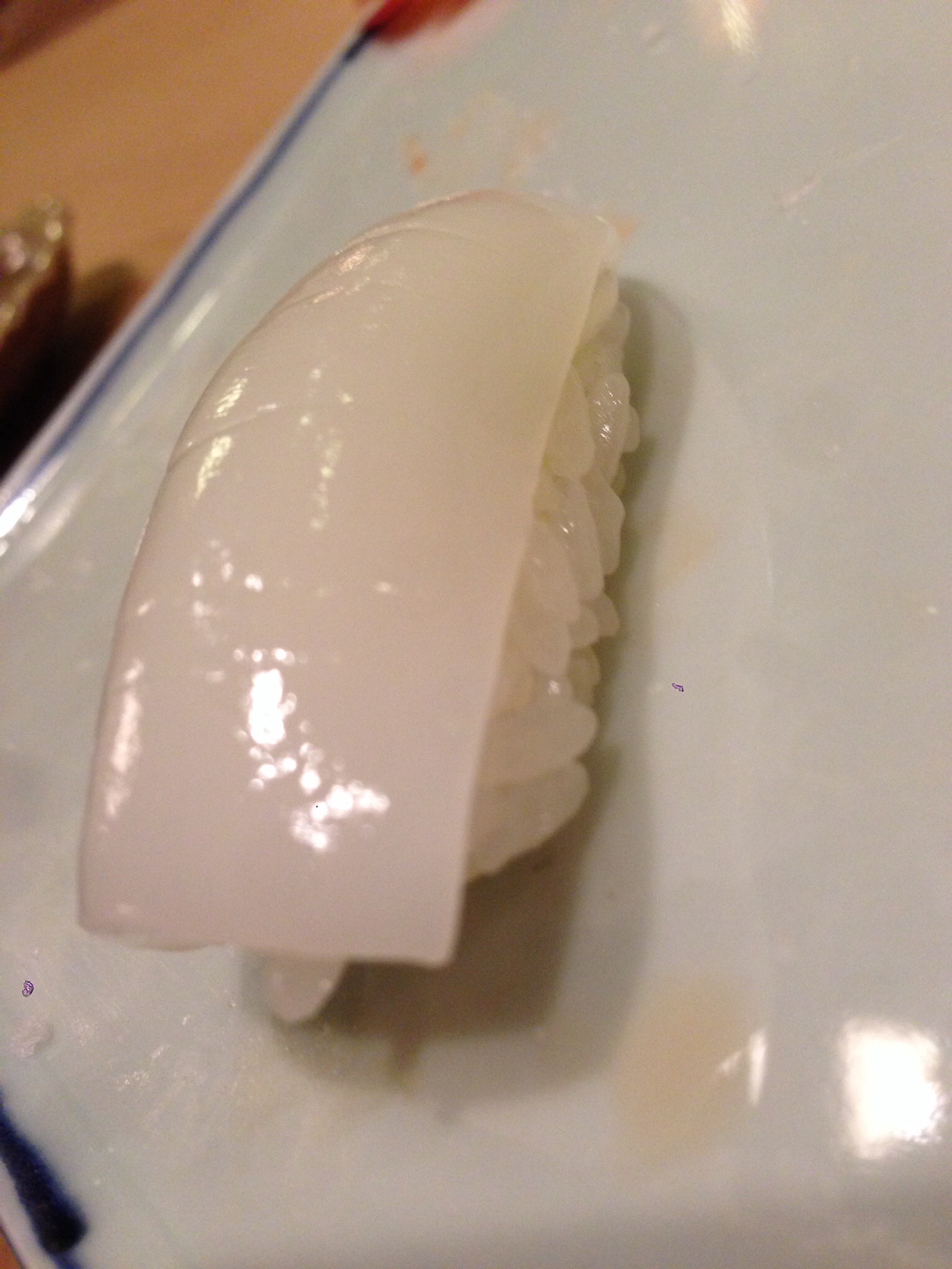 One of my favorite types of fish used in sushi is “IKA” = squid and is very popular in Japan. There are about 500 species of squid live throughout the world, 130 species of them are living in Japan. Most famous kinds as a sushi are “Sumi ika”, “Yari ika”, “Aori ika” or “Surume ika”. The basic taste of raw squid is firm texture, some kinds are mild or gooey.