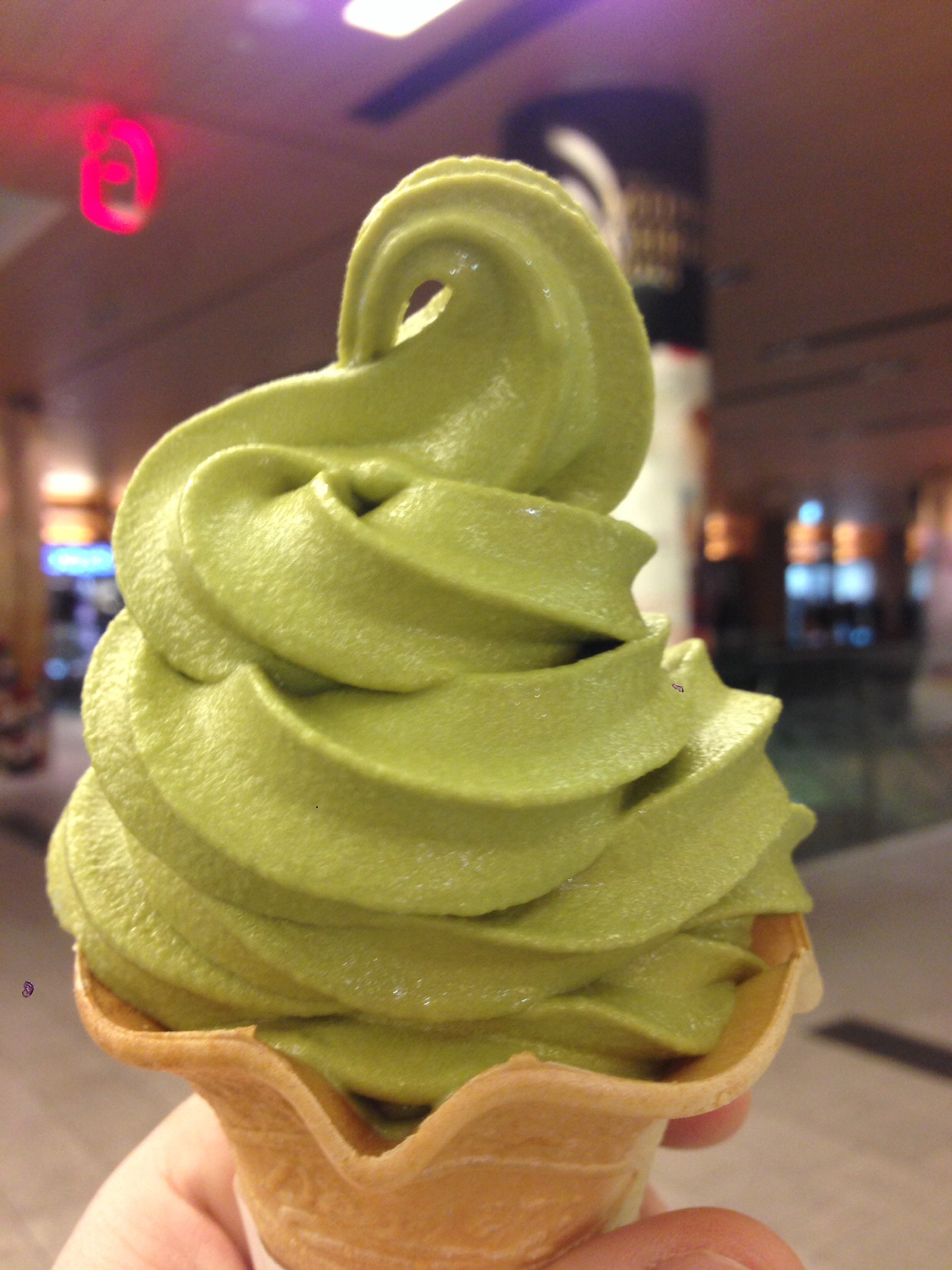 This is Japanese green tea ice cream and the color is slightly lighter than usual but this ice cream has a very substantial taste. Many of these Ice cream’s are made with artificial flavors and coloring. Some Green Tea Ice Creams have natural green coloring from the catechin present in green tea.